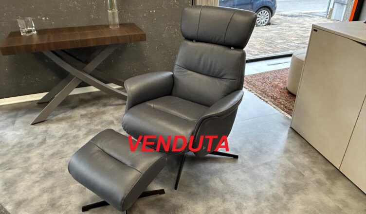 Poltrona Girevole in Pelle (con Recliner manuale) con pouff in pelle col Blue e base col. Antracite